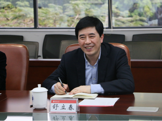 座談會上,劉洪一對舒立春一行的來訪表示熱烈歡迎。他從學校的發展歷程、文化建設、高水平大學建設、創新創業人才培養等方面介紹了深圳大學的基本情況。深圳大學是與經濟特區共同發展的綜合性大學,以建設新時代人民滿意的高水平特區大學為發展目標。深圳大學以習近平新時代中國特色社會主義思想為指導,提升管黨治黨辦學治校能力;堅持文化立校,以文化引領學校各項事業發展進步;全面提升辦學水平和影響力等。他表示,是深圳這座城市的人才政策、特區魅力和深圳大學的學術氛圍、人文氣息吸引著全世界的高新人才前往深圳和深大發展。新時期的深圳大學將把握住粵港澳大灣區建設的重大機遇,不斷推進科技創新與轉化,在上級政府指導下把各項工作落實好。