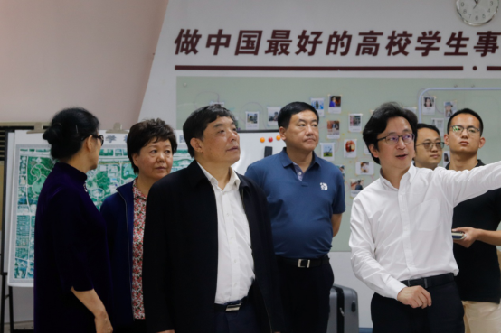 在范志剛等人的陪同下,周健民一行首先參觀了學生事務中心,聽取了有關運行機制、人員構成等基本情況的匯報。他非常認可學生事務中心的運行管理機制,可以讓學生充分參與到學生事務管理中,激發了學生參與工作的積極性。在二維材料光電科技國際聯合實驗室,在聽取了范滇元院士對實驗室的師資隊伍、部門建設、運行框架、研究領域詳細介紹后,周健民肯定了實驗室在國內光電領域做出的突出貢獻以及國內外光電領域的優勢地位。在大數據系統計算技術國家工程實驗室,周健民一行了解到計算機與軟件學院的知名校友、國際排名以及最新科研成果等。周健民表示深圳大學計算機學科發展底蘊深厚,對全國乃至全球的計算機技術與互聯網領域的發展都發揮著積極影響。