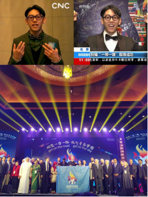 在前兩日緊張的賽事中,來自五大洲、70個國家的265名青年選手們參加了比賽,外國學生參與了演講、音樂、沙畫、攝影、電子競技、論文六項比賽的角逐,以各種形式分享了他們對“一帶一路”倡議的理解。代表我校參賽的是國際交流學院國際合唱團的四名成員,他們分別是MOONSUB SHIN(韓國、經濟學院)、何嘉偉(中國、師范學院)、JAXYBAYEVA AIYA(哈薩克斯坦、國際交流學院)和THENG YEAN CHEAH(馬來西亞、金鐘音樂學院)。這支跨國合唱組憑借一曲《我愛你中國》,展現了各國文化融合之美,通過歌聲表達了濃厚的中國情結,歌聲悠揚,深情款款,贏得了在場評委和選手們的掌聲,將比賽推向高潮。盡管高手云集,競爭激烈,我校國際合唱組還是獲得音樂項目的二等獎。