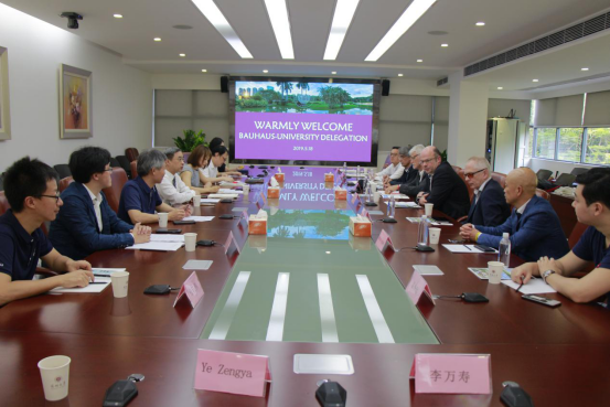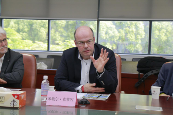 德國國家科學與工程院院士Michael Klein對我校的熱情接待表示感謝,并表明此行是為了與我校探討開展合作辦學的可能性。他表示,兩校在學科建設、人才培養上有很多共通之處,均具備一些與其他高校合作的經驗可供借鑒。包豪斯大學城市規劃與建筑學院院長Bernd Rudolf稱,他了解到深圳大學在第十五屆文博會深大文化創意園分會場舉行了“深圳大學第七屆建筑文化節——致敬包豪斯100周年”活動,令他感覺像回到家鄉一樣親切。包豪斯是魏瑪包豪斯大學的前身“公立包豪斯學?!钡暮喎Q,該校創建于1919年,后改稱“設計學院”,在兩德統一后更名為魏瑪包豪斯大學。它的成立標志著現代設計教育的誕生,對世界現代設計的發展產生了深遠的影響。Bernd Rudolf表示,包豪斯大學與深大相比,辦學規模要相對小很多,但對于國際化的需求非常大,目前依然在不斷地努力,希望能把“包豪斯精神”延續并發揚下去。包豪斯大學城市規劃與建筑學院教授Bernd Nentwig也補充說明了希望兩校開展國際化合作的愿景。