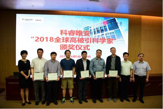 6月5日上午,科睿唯安2018高被引科學家頒獎會議在我校南圖書館一樓報告廳召開,來自深圳大學、南方科技大學和香港中文大學(深圳)的7位教授入選科睿唯安“2018全球高被引科學家”。深圳大學副校長王暉,科睿唯安大中華區學術研究事業部總經理郭利,深圳大學黨政辦、科技部、人力資源部、研究生院、圖書館等相關職能部門領導、各學院負責學科建設的有關領導、相關學科帶頭人以及南方科技大學圖書館負責人等出席了頒獎儀式。
