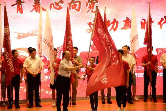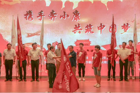 儀式上,校領導分別為經濟學院、師范學院(教育學部)、傳播學院、醫學部、計算機與軟件學院、建筑與城市規劃學院、數學與統計學院、土木與交通工程學院、學生部等實踐團隊領隊及學生代表授旗。