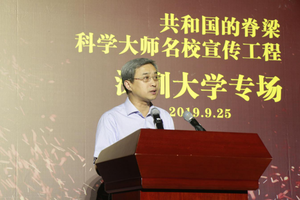 為慶祝中華人民共和國成立70周年,9月25日,由中國科協(xié)、教育部、共青團(tuán)中央、中國科學(xué)院、中國工程院共同主辦,廣東省科協(xié)、廣東省教育廳、共青團(tuán)廣東省委、中科院廣州分院和中山大學(xué)、深圳大學(xué)、汕頭大學(xué)、廣東醫(yī)科大學(xué)等聯(lián)合承辦的“共和國的脊梁——科學(xué)大師名校宣傳工程”匯演活動走進(jìn)深圳大學(xué),由西北工業(yè)大學(xué)帶來的話劇《尋找?guī)煵w》在我校演會中心首演。這也是我校落實(shí)“不忘初心、牢記使命”主題教育的一項(xiàng)重要特色活動。