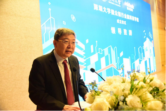 深圳市副市長艾學峰,深圳市原副市長、哈工大(深圳)經管學院教授唐杰,深圳市地方金融監督管理局副巡視員林居正,深圳市教育局二級巡視員關蘇,深圳大學校長李清泉、副校長徐晨,以及微眾銀行董事長顧敏、行長李南青等出席成立大會。