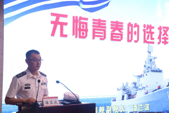 潘蘭波分享了自己參軍的成長經(jīng)歷,并介紹了我國海軍建設(shè)、尤其是深圳艦的發(fā)展成就。在2015年從武漢理工大學(xué)畢業(yè)后,潘蘭波便孜孜追求自己的海軍夢,對于自己的選擇,他慷慨激昂地說:“生命里有了當(dāng)兵的歷史,一輩子也不會感到后悔,軍旅生涯也必將是此生我最值得驕傲的經(jīng)歷!”