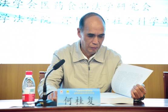 何桂復在開幕致辭中強調,開展醫藥食品法學研究,要始終堅持以習近平新時代中國特色社會主義思想為指導,認真學習貫徹黨的十九大和十九屆四中全會精神,醫藥食品法學理論研究最新成果要滿足人們日益增長的健康需要;醫藥食品法學理論研究要堅持問題導向,根植實踐沃土,以問題為切入點、健康為關注點,重視成果轉化應用。