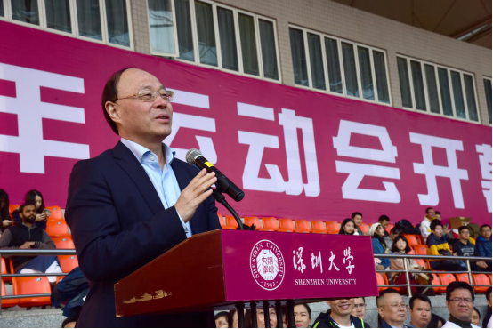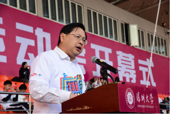 盧成燕在致辭說,習(xí)近平總書記在黨的十九大報(bào)告中明確指出,要“廣泛開展全民健身活動(dòng),加快推進(jìn)體育強(qiáng)國建設(shè)”,并提出“實(shí)施健康中國戰(zhàn)略”的號(hào)召。體育作為學(xué)校全面實(shí)施文化素質(zhì)教育的重要支撐,對(duì)校園文化建設(shè)具有舉足輕重的意義。我校在《深圳大學(xué)文化創(chuàng)新發(fā)展綱要》中明確把藝術(shù)體育工程作為重點(diǎn)推進(jìn)的十項(xiàng)文化創(chuàng)新發(fā)展工程之一,通過制定《深圳大學(xué)藝術(shù)體育學(xué)科高峰計(jì)劃》,推動(dòng)體育學(xué)科發(fā)展,重點(diǎn)建設(shè)乒乓球、排球、圍棋等高水平運(yùn)動(dòng)隊(duì),培養(yǎng)體育專業(yè)學(xué)生,為粵港澳大灣區(qū)和社會(huì)主義先行示范區(qū)的經(jīng)濟(jì)社會(huì)和文化發(fā)展提供體育創(chuàng)新人才。他對(duì)我校學(xué)子在各級(jí)各項(xiàng)體育競技中取得的豐碩成果予以肯定,贊揚(yáng)我校教師、教練員和運(yùn)動(dòng)員奮發(fā)向上、不甘人后的拼搏精神,彰顯了深圳大學(xué)勇于挑戰(zhàn)的文化品格和自強(qiáng)不息的精神風(fēng)貌。