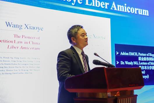 在專題研討的同時,本次會議還召開了王曉曄教授致敬文集的發(fā)布會。該紀(jì)念文集由霍金路偉國際律所合伙人Adrian EMCH和墨爾本大學(xué)講師Dr.Wendy NG組織國內(nèi)外競爭法領(lǐng)域知名學(xué)者和專家共同完成,他們在本環(huán)節(jié)共同發(fā)布了紀(jì)念文集在境外出版的信息,并分享了組織本書撰寫和出版的歷程,隨后浙江理工大學(xué)法政學(xué)院院長王健教授代表文集所有作者做了分享發(fā)言,并對王曉曄教授的學(xué)術(shù)貢獻(xiàn)作出了高度評價。發(fā)布會最后,王曉曄教授動情發(fā)表致謝感言,表示未來將在反壟斷之路上繼續(xù)努力前行。