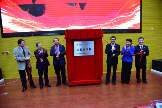 王松靈、張學記、周學東、趙銥民、朱衛國、柴金龍共同為深圳大學醫學部口腔醫學院揭牌。為了加快口腔醫學學科的發展,醫學部決定成立深圳大學口腔醫學發展專家委員會,聘任周學東擔任專家委員會主任,俞光巖、張志愿、王松靈3人擔任副主任,趙銥民等11人擔任委員,口腔醫學院副院長沙鷗教授擔任秘書長。朱衛國為專家委員會成員逐一頒發聘書。深圳大學醫學部口腔醫學院的成立和深圳大學口腔醫學發展專家委員會的成立,標志著深圳大學口腔醫學建設進入新紀元,在深圳建設社會主義先行示范區的背景下進入飛速發展的“快車道”。
