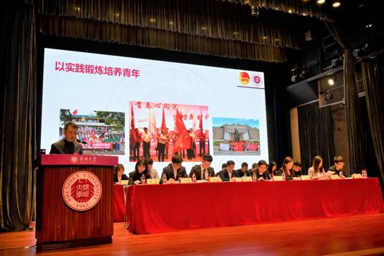 殷濤表示,過去四年,在學校黨委和上級團委的正確領(lǐng)導和悉心關(guān)懷下,我校共青團深入貫徹落實《深圳大學文化創(chuàng)新發(fā)展綱要》和《中共深圳大學委員會關(guān)于貫徹落實< 高校共青團改革實施方案>的意見》,保持和增強團學組織政治性、先進性、群眾性,不斷深化自身改革,聚焦主責主業(yè),緊扣學校黨政中心工作,立足思想引領(lǐng)和成長服務兩大戰(zhàn)略任務,在思想引領(lǐng)、創(chuàng)新創(chuàng)業(yè)、校園文化、社會實踐、志愿服務和基層組織建設等領(lǐng)域取得新成果。
