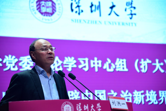 劉洪一在總結講話中指出,杜新山的報告具有很強的思想理論性和實踐指導性,讓廣大師生黨員干部進一步加深了對黨的十九屆四中全會精神的認識和理解,進一步堅定了中國特色社會主義的道路自信、理論自信、制度自信和文化自信。他強調,當前,深圳大學正緊抓粵港澳大灣區和中國特色社會主義先行示范區建設的重大機遇,加快高水平大學建設步伐。我們要進一步學習貫徹落實黨的十九屆四中全會精神,進一步強化特區大學、窗口大學、實驗大學的使命擔當,不斷健全和優化管黨治黨、辦學治校的各項制度規范,在大學治理體系和治理能力建設上勇于探索,率先示范,確保全會精神在深圳大學落地生根。