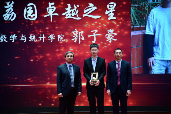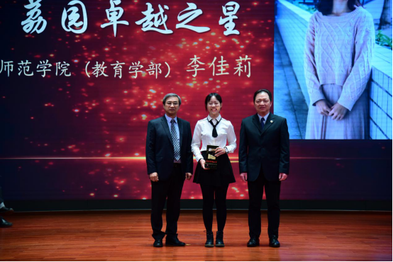 王暉為管理學(xué)院黃曉雯、數(shù)學(xué)與統(tǒng)計(jì)學(xué)院郭子豪、生命與海洋科學(xué)學(xué)院李偉軒、計(jì)算機(jī)與軟件學(xué)院黃彥道、師范學(xué)院(教育學(xué)部)李佳莉、人文學(xué)院曾子適等6位“荔園卓越之星”頒發(fā)獎(jiǎng)杯,將頒獎(jiǎng)典禮氣氛推向高潮。6位“荔園卓越之星”所在學(xué)院領(lǐng)導(dǎo)分別介紹了獲獎(jiǎng)?wù)叩那闆r,并播放了他們個(gè)人視頻。每位“荔園卓越之星”都發(fā)表了獲獎(jiǎng)感言,他們表示,獲得這份榮譽(yù)除了自己的勤奮努力外,更離不開(kāi)學(xué)校的培養(yǎng)、家人的支持以及朋友的幫助。