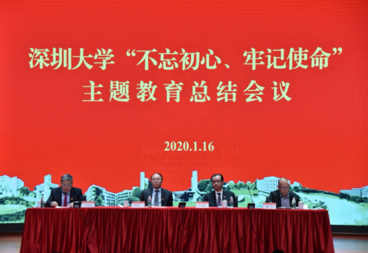 1月16日,深圳大學(xué)“不忘初心、牢記使命”主題教育總結(jié)會(huì)議在國(guó)際會(huì)議廳舉行。會(huì)議學(xué)習(xí)貫徹習(xí)近平總書記在“不忘初心、牢記使命”主題教育總結(jié)大會(huì)上的重要講話精神,貫徹落實(shí)黨中央、省委、市委主題教育總結(jié)大會(huì)精神,對(duì)我校主題教育的做法、成效和經(jīng)驗(yàn)進(jìn)行總結(jié),對(duì)下一步貫徹落實(shí)習(xí)近平總書記重要講話精神和黨中央、省委、市委決策部署,鞏固深化主題教育成果,推動(dòng)“不忘初心、牢記使命”制度建立等各項(xiàng)工作落實(shí)作出部署。