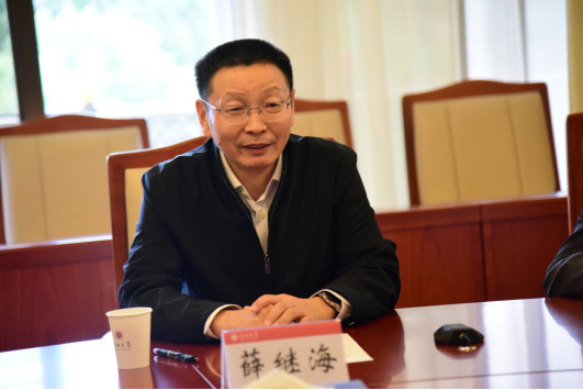 1月17日上午,新疆維吾爾自治區教育廳黨組副書記、副廳長、喀什大學黨委書記薛繼海一行來我校交流。我校黨委書記劉洪一、副書記范志剛,黨政辦公室、統戰部等部門負責人與來賓座談交流。