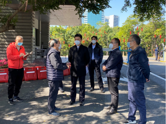 1月30日上午,深圳市委教育工委書記陳秋明一行到深圳大學調研檢查學校疫情防控工作。副校長王暉,黨政辦公室、黨委宣傳部、學生部、后勤部、安全保衛部等部門負責人陪同檢查。