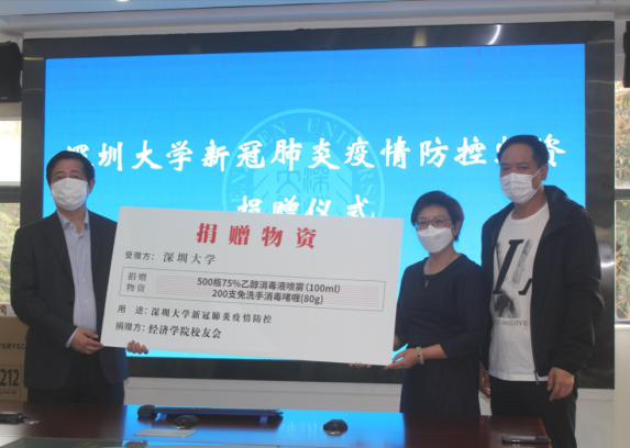 疫情發生以來,校友時刻牽掛母校,關心師生的健康狀況和抗疫情況。3月1日上午,又一場暖心的捐贈儀式在匯元樓201會議室舉行。為解決學校新冠肺炎疫情防控物資的困難,經濟學院校友會向母校捐贈了10000只一次性防護口罩、100支水銀溫度計、500瓶消毒液噴霧、200支免洗手消毒啫喱等疫情防控物資,向經濟學院疫區師生捐贈慰問金113000元。副校長李永華,93級校友、經濟學院校友會會長黃俊武,經濟學院校友代表林明輝、曾永明、范文鮮,后勤部、經濟學院負責人、師生代表等出席了捐贈儀式。