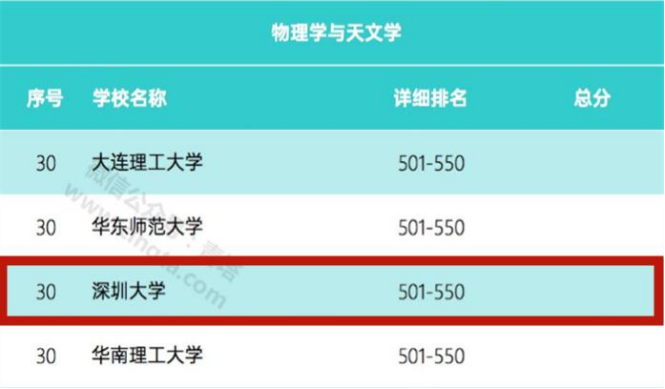 3月3日,QS全球教育集團發布了第十次世界大學學科排名。深圳大學的“物理學與天文學”和“計算機科學與信息技術”兩個學科入選分別全球600強。