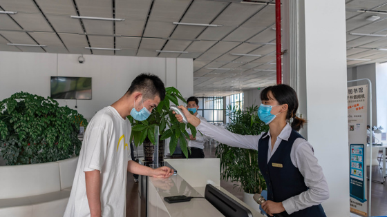 此次演練預設學生在宿舍樓和圖書館發現體溫異常情況的處置。在山楂樹一樓,宿管員對進出人員進行日常體溫檢測,發現有一名學生體溫超標,宿管員立即按照防疫要求進行上報,校醫院、麗湖校區管理辦、學生部等各單位負責人立即行動,協助處置。校醫院值班醫生和救護車迅速到達可疑病例所在位置,在宿舍樓臨時觀察區進行現場詢問病史和體檢,并進行初步的流行病學調查等。校醫院診斷該病人為新冠肺炎疑似病例后上報區疾控中心,并聯系轄區定點發熱接診醫院——深圳大學總醫院進行轉運。麗湖校區疫情防控工作組向學校疫情防控指揮部報告,并根據區疾控中心指令部署校區防疫措施,對疑似病例的生活軌跡進行排查,對相關場所消殺封閉,對疑似病例的密切接觸者實施隔離觀察,對疑似病例所在樓宇和學院的學生進行健康風險告知,學生部和學院對學生發布防護提醒和心理疏導。此后麗湖校區疫情防控工作組繼續對病例情況進行跟蹤,及時向學校疫情防控指揮部報告上報最新情況。本次演練包括發現體溫異常、流行病學史調查、轉運至定點醫院、生活軌跡排查、密切接觸者隔離、環境消殺封閉、疫情信息發布、學生情況跟蹤、學生健康及心理指引等多個環節。此外,麗湖校區還在圖書館進行了不同場景的模擬演練。