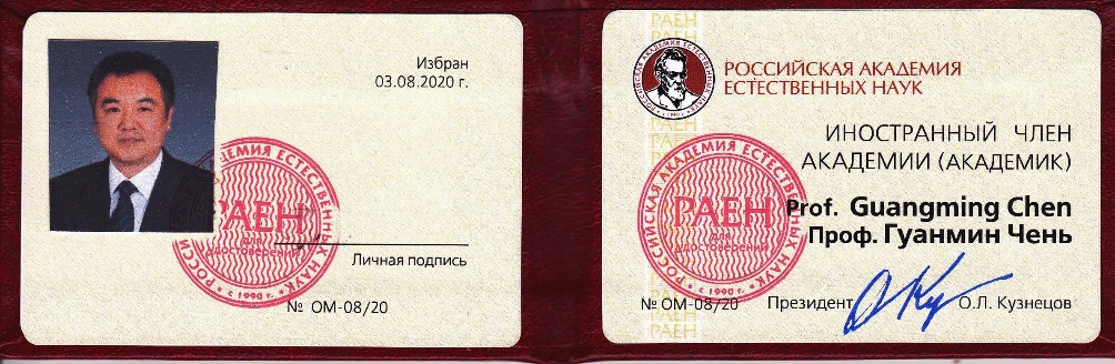 近日,俄羅斯自然科學(xué)院(Russian Academy of Natural Sciences,RAEN)向我校材料學(xué)院陳光明教授發(fā)來(lái)賀信,祝賀他當(dāng)選為俄羅斯自然科學(xué)院外籍院士。