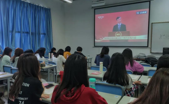 廣大師生認真觀看大會直播,仔細聆聽習近平總書記重要講話,全神貫注、邊聽邊記,深切感受大會熱烈氛圍,深入領會總書記重要講話的核心要義與精神實質。習近平總書記的重要講話在廣大師生中引發強烈反響,大家深受鼓舞、倍感振奮,為深圳經濟特區建立40年來所取得的偉大成就感到驕傲。