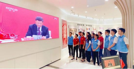 學校黨委書記劉洪一參加了慶祝大會;校長李清泉,黨委副書記范志剛,黨委副書記、紀委書記盧成燕,副校長徐晨、王暉、李永華,基層黨委書記,教師代表和學生代表等200余人在深圳大學國際會議廳集中收看大會直播;各基層黨委、各部門采取多種形式,利用電視、網絡、手機、廣播等多媒體平臺,組織廣大黨員干部和師生員工收聽收看慶祝大會實況;學校辦公樓、教工餐廳、學生食堂等多地電子顯示屏同步直播慶祝大會。