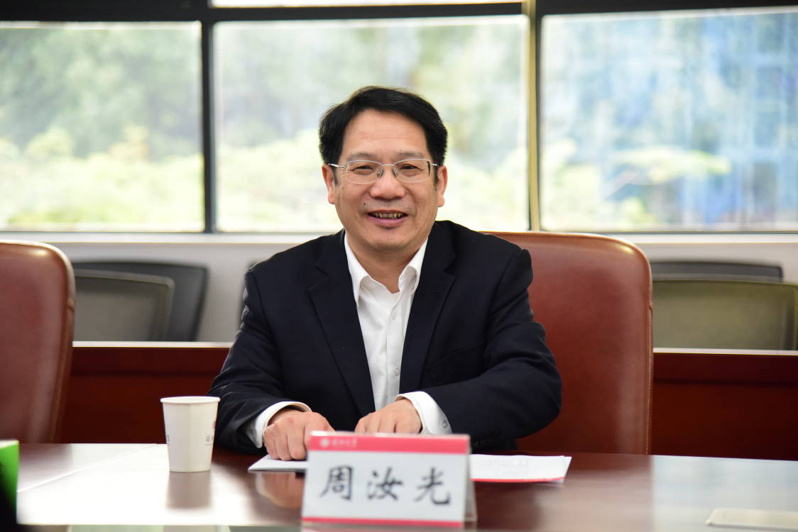 徐晨對周汝光一行的到來表示歡迎,并介紹了深圳大學的辦學歷史、學科建設、辦學成就等。他說,深圳大學從建校初期就以“窗口大學、實驗大學、特區大學”為辦學特色,在辦學理念上做出新的嘗試。深圳大學在高校管理體制方面銳意改革,在獎學金、學分制、勤工儉學、人事制度、后勤管理等方面進行了積極探索和率先改革,在全國引起強烈反響;在學科建設和人才引進方面,不斷優化師資隊伍結構,憑借完善的科研激勵制度引進和培養高層次人才,使得深大很多科研成果指標排在全國前列,學科建設成效凸顯,部分學科實力已居國內一流行列;在辦學理念方面,積極推進“國際化人才培養、國際化科研合作、國際化師資建設、國際文化交流”,培養高素質創新創業人才,倡導學生自主創新創業,培養出馬化騰、史玉柱等一批杰出校友。38年來,深圳大學已建設成為一所符合深圳特區特色的高水平大學,并為特區建設持續不斷地輸送人才。