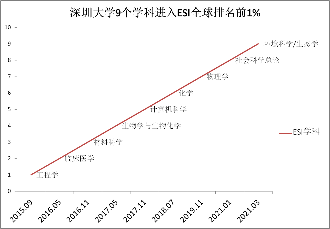 根據科睿唯安(Clarivate Analytics)2021年3月25日最新的ESI(Essential Science Indicators,基本科學指標)數據顯示,深圳大學環境科學/生態學學科首次進入ESI世界排名前1%行列,成為我校繼工程學、臨床醫學、材料科學、生物學與生物化學、計算機科學、化學、物理學、社會科學總論之后第九個躋身ESI全球前1%的學科。本期ESI數據統計覆蓋時間為2010年1月1日至2020年12月31日。