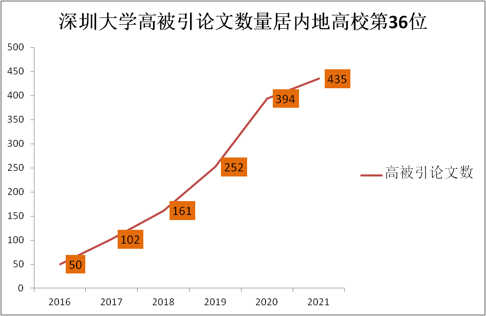 深圳大學自2015年9月工程學科率先進入ESI全球排名前1%,實現零的突破以來,至今已有9個學科相繼進入。除國際高校排名提升了1200位,位居內地高校第52位以外,深圳大學的ESI高被引論文數量增長了近8倍,位列內地高校第36名,領跑“全國進步最快的大學”,實現了有數量有速度的高質量發展。目前,深圳大學正全力建設頂尖學科,其中工程學(1.62‰)、計算機科學(1.74‰)、材料科學(1.77‰)3個學科入選ESI前千分之三;化學、臨床醫學入選ESI前千分之五。