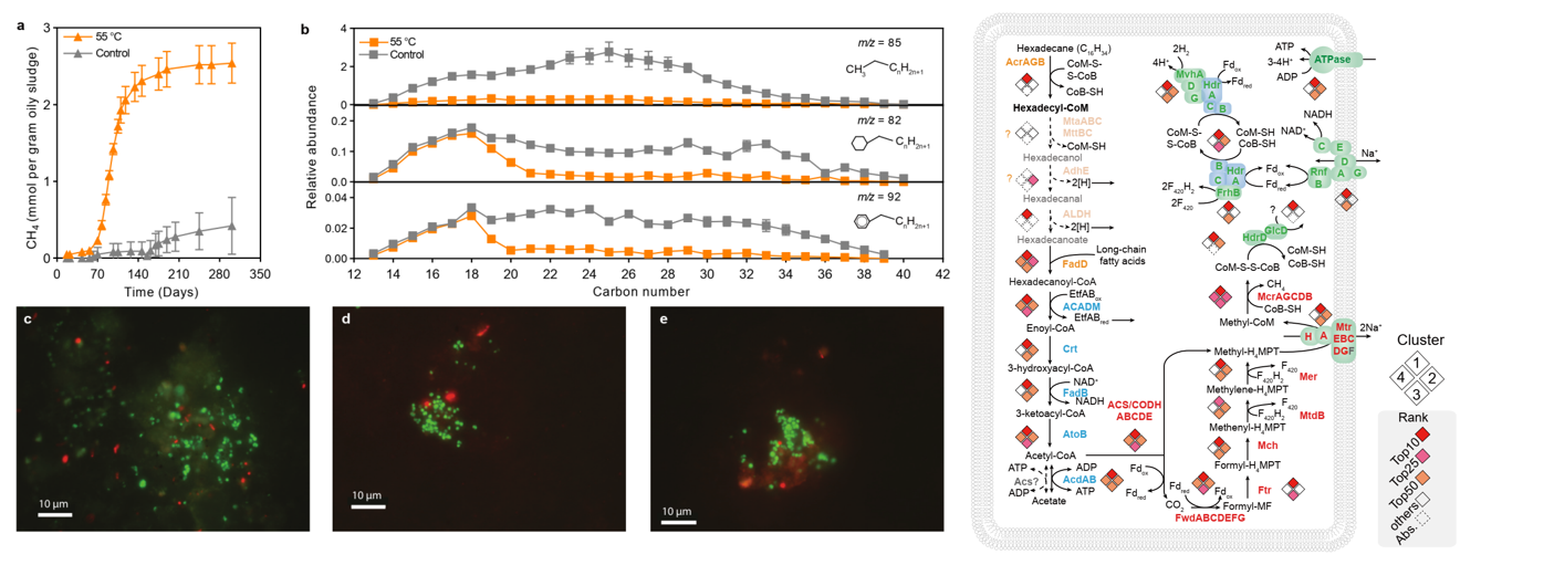 該研究證實(shí)了古菌可以獨(dú)立降解復(fù)雜石油烴產(chǎn)甲烷,并提出了一種新的古菌甲烷產(chǎn)生類(lèi)型,即長(zhǎng)鏈烷烴代謝產(chǎn)甲烷,區(qū)別于傳統(tǒng)的氫營(yíng)養(yǎng)型、乙酸還原型和甲基營(yíng)養(yǎng)型。