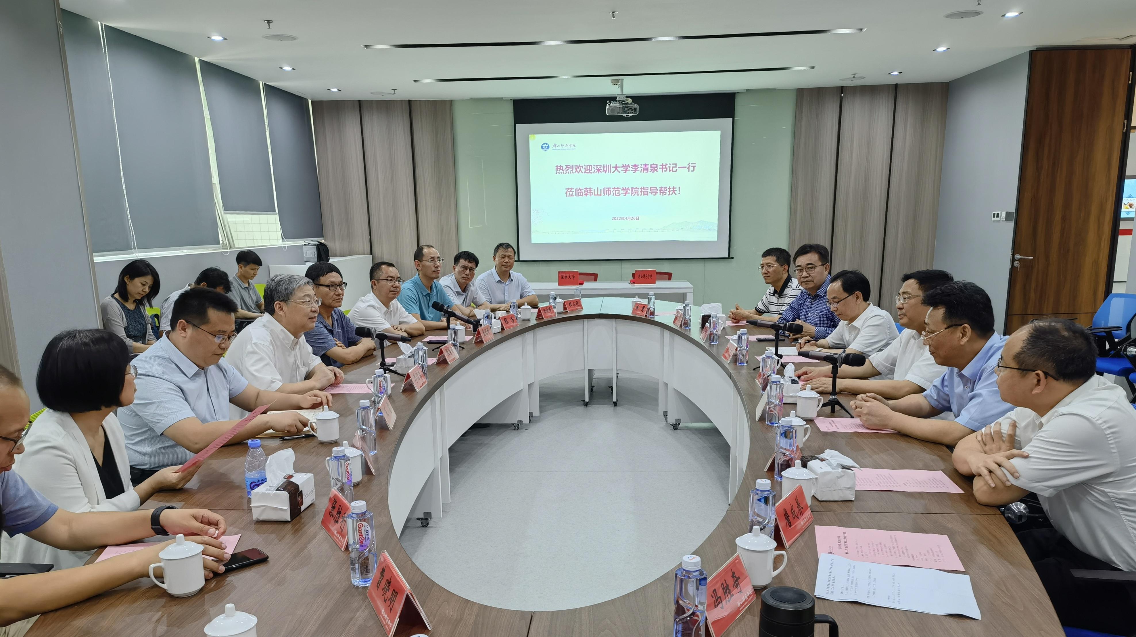 深圳大學黨政辦公室、黨委組織部統戰部、黨委宣傳部、發展規劃部、招生辦公室負責人及工作專員陪同調研、參加座談,韓山師范學院相關職能部門負責同志參加座談交流。
