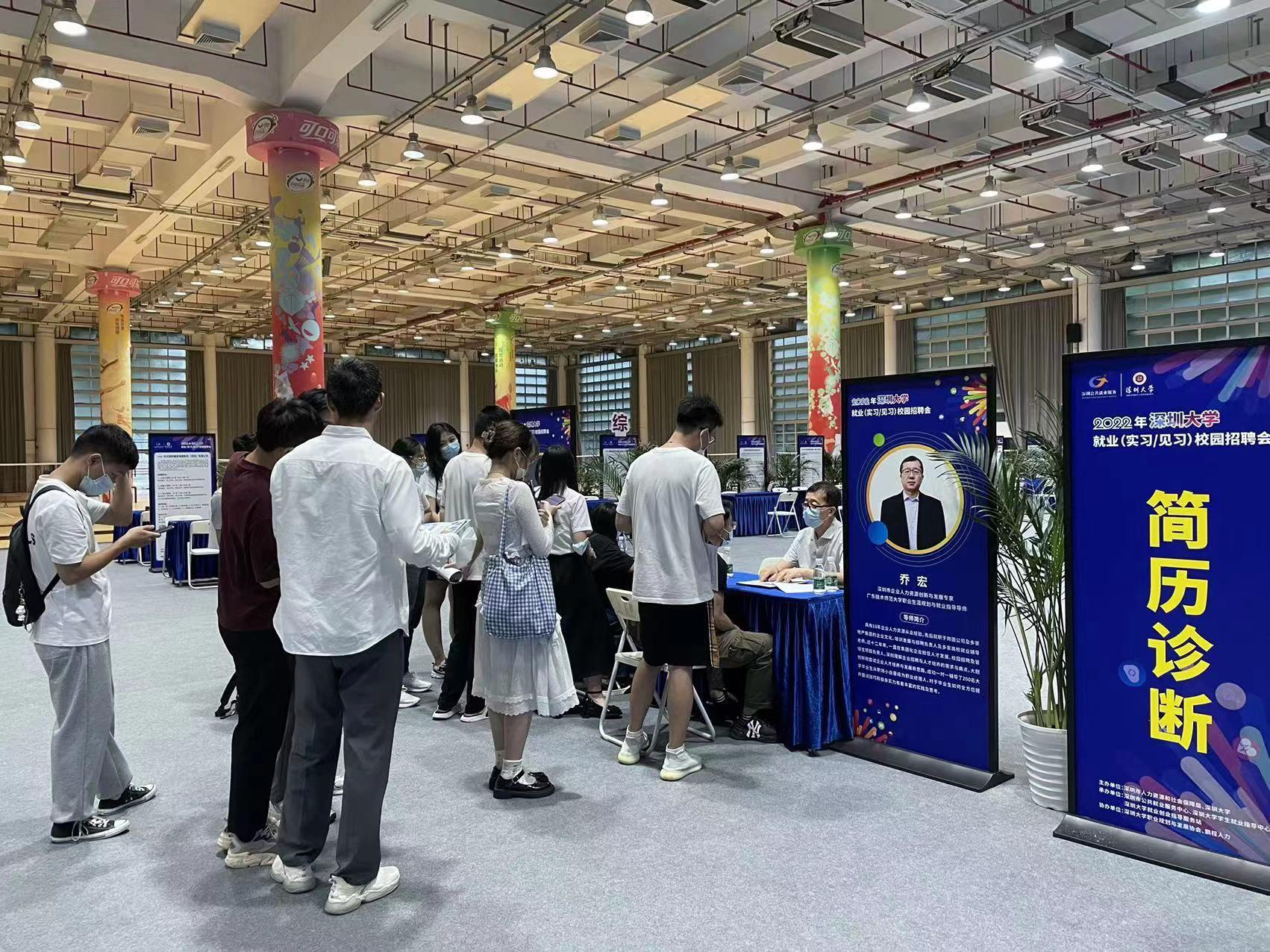 為拓寬高校畢業生市場化就業渠道,精準幫扶未就業畢業生,6月12日下午,2022年深圳大學就業(實習/見習)校園招聘會在深大粵海校區南區舉行。招聘會共有120家優質企業提供超過4000個就業崗位,吸引1800余名畢業生進場求職,用人單位共收到簡歷3228份,初步達成就業意向率35%,技術研發類、財務類、運營策劃類崗位需求最為旺盛。