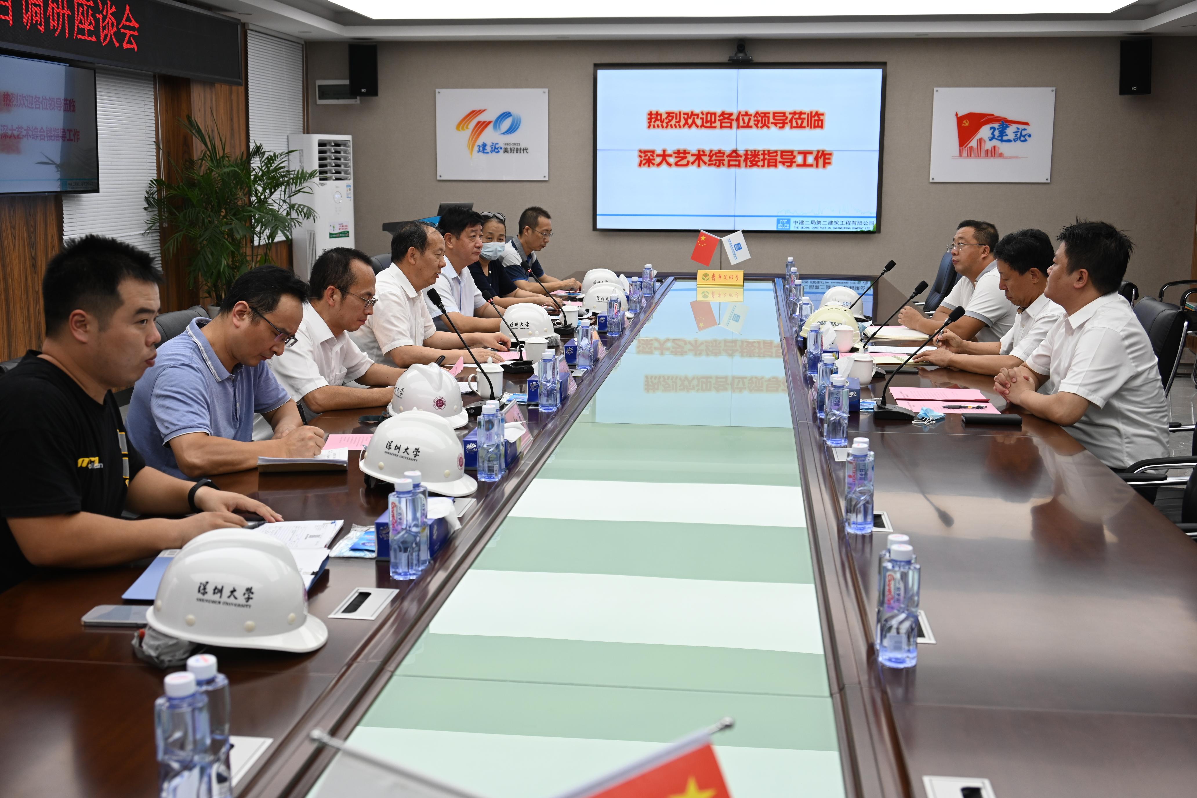 9月16日下午,深圳大學(xué)校長毛軍發(fā)、副校長李永華率隊赴深大藝術(shù)綜合樓項目基地開展調(diào)研,并與項目建設(shè)方舉行座談,后勤保障部負(fù)責(zé)人陪同調(diào)研。中建二局二公司副總經(jīng)理、深圳分公司經(jīng)理申楊毅,藝術(shù)綜合樓項目指揮長魏利新,首嘉咨詢有限公司副總經(jīng)理潘多忠等出席座談會。
