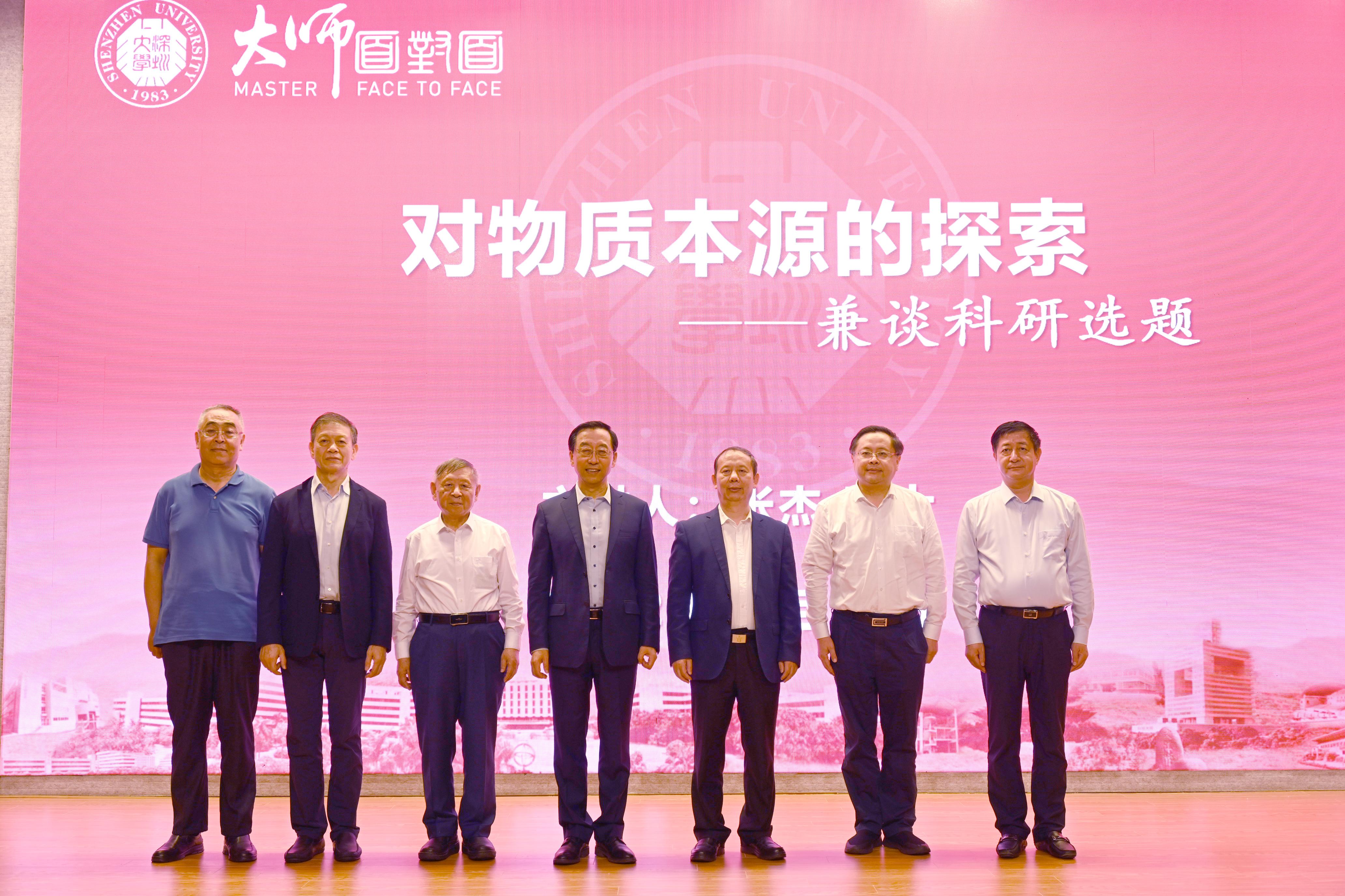 138億年前的宇宙大爆炸后發(fā)生了什么?如今人類探索宇宙本源的極限在哪里?人類離揭開暗物質(zhì)的秘密還有多遠(yuǎn)?11月17日,深圳大學(xué)匯星樓一號(hào)報(bào)告廳座無虛席,著名物理學(xué)家、李政道研究所所長、五院院士、上海交通大學(xué)原校長張杰出現(xiàn)在“大師面對(duì)面”講座上,用一場精彩的學(xué)術(shù)報(bào)告,帶現(xiàn)場的師生“穿越”138億年的時(shí)空之旅,分享了關(guān)于宇宙物質(zhì)起源與演化最前沿的科學(xué)發(fā)現(xiàn)與思考。深圳大學(xué)校長、中國科學(xué)院院士毛軍發(fā)主持了這次報(bào)告會(huì)。深圳市政協(xié)原主席戴北方,中國工程院院士范滇元,深圳大學(xué)副校長徐晨、李永華出席報(bào)告會(huì)。