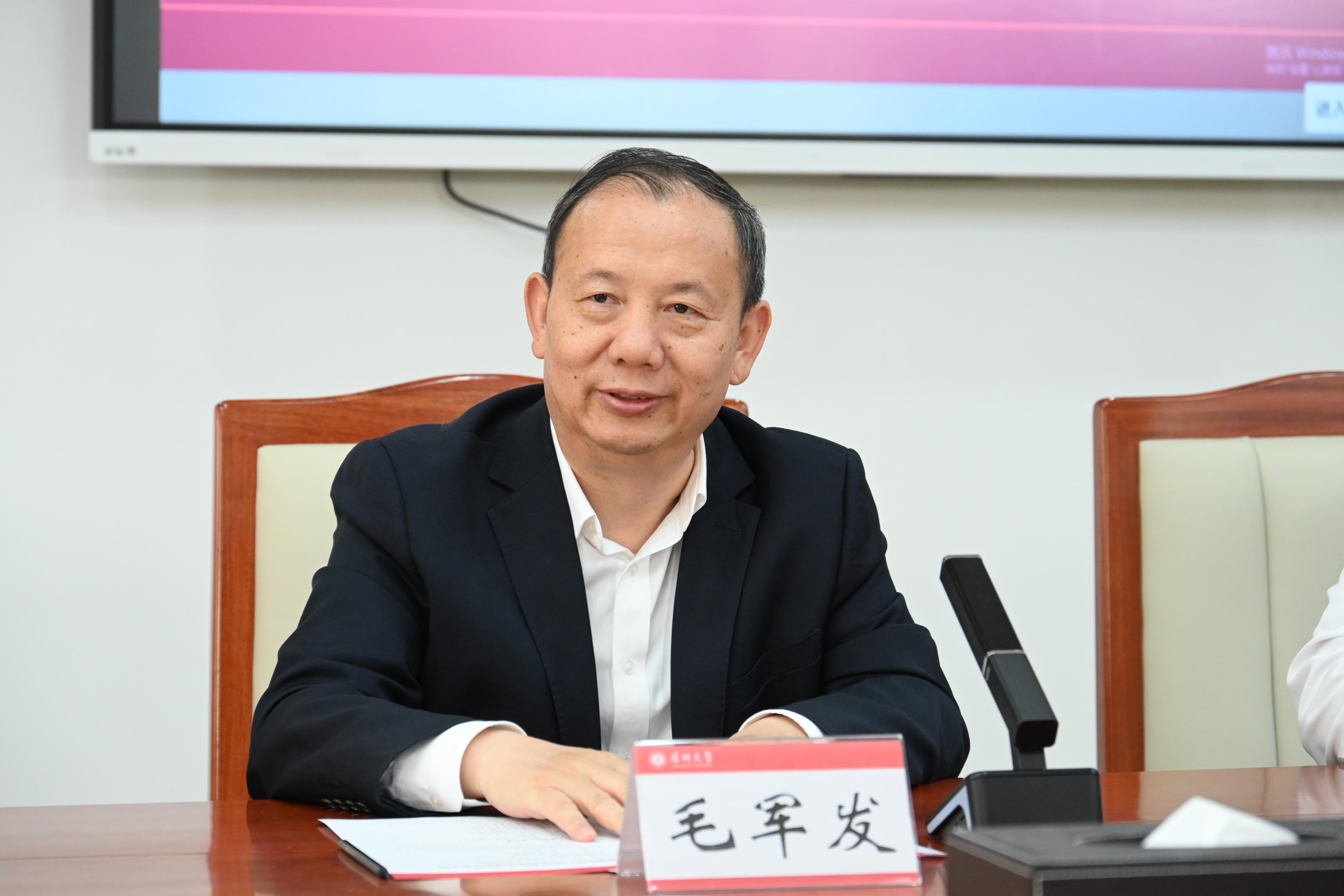 毛軍發對李洪茂一行的到來表示熱烈歡迎,他從辦學歷史、學生規模、科研情況、師資力量、產學研情況等方面對深圳大學作了全面介紹。他表示,深圳大學作為深圳市唯一一所綜合性大學,與深圳經濟特區發展同呼吸共命運,承擔著為深圳市高等教育發展、粵港澳大灣區人才培養與經濟社會發展作貢獻的使命。深圳大學歷來高度重視校企合作,希望此次交流作為深大與建行合作的良好開端,乘著深圳大學四十周年校慶的東風,充分發揮雙方的資源優勢和人才技術優勢,促進產學研合作向縱深邁進,共同打造校企融合及戰略發展的新高樓,為深圳“雙區”建設和粵港澳大灣區以及國家金融科技發展做出貢獻。