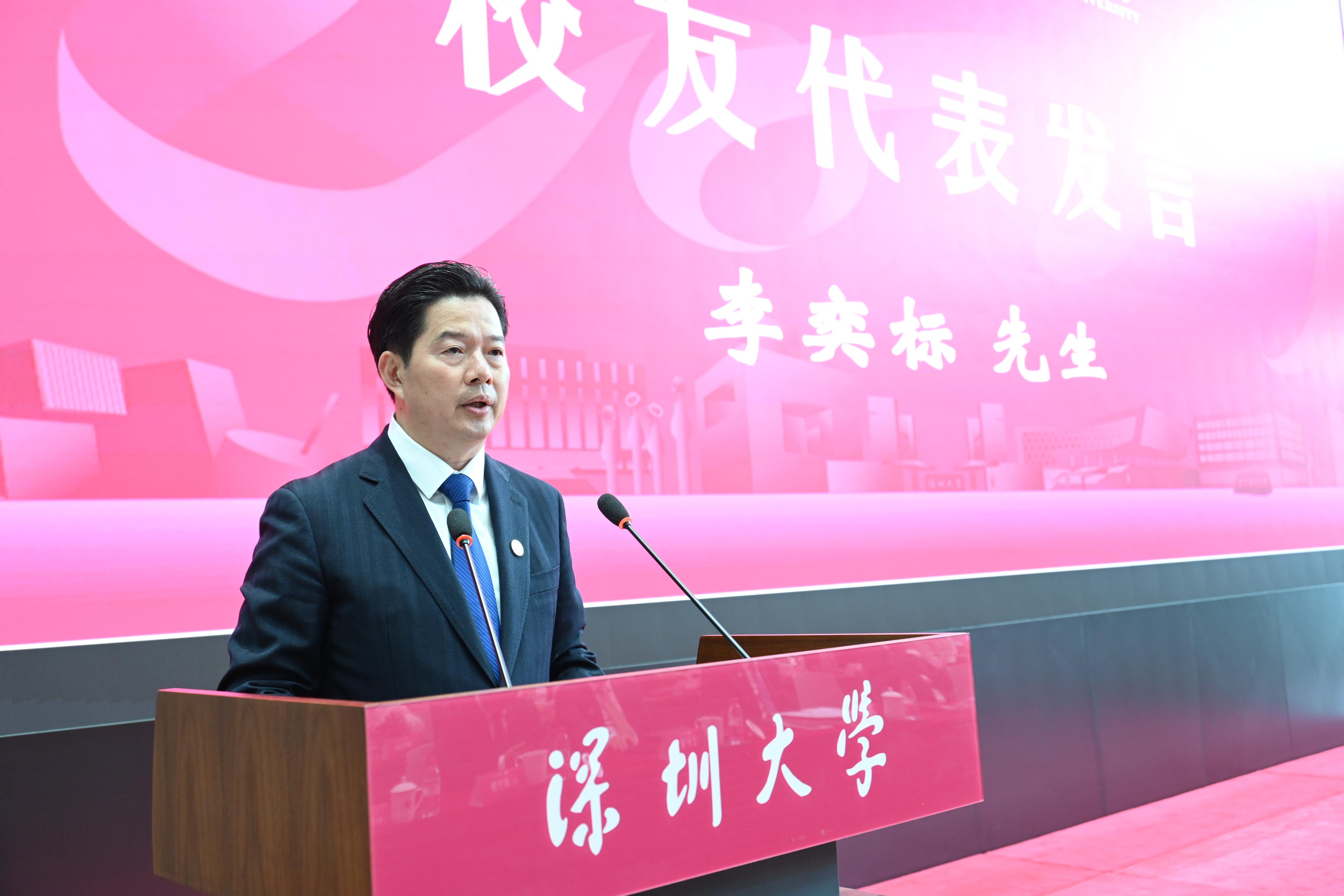 李奕標在發言中表達了對母校的深切情感。他說,深圳大學在過去的幾十年里,為深圳的發展和社會的進步做出了重要的貢獻。深大的教育理念和教學質量也深受社會各界的認可和贊譽。“作為一名深圳大學的校友,我深深地感到,我們的責任不僅僅是回饋母校,更是要在自己的領域中做出更多的貢獻。”