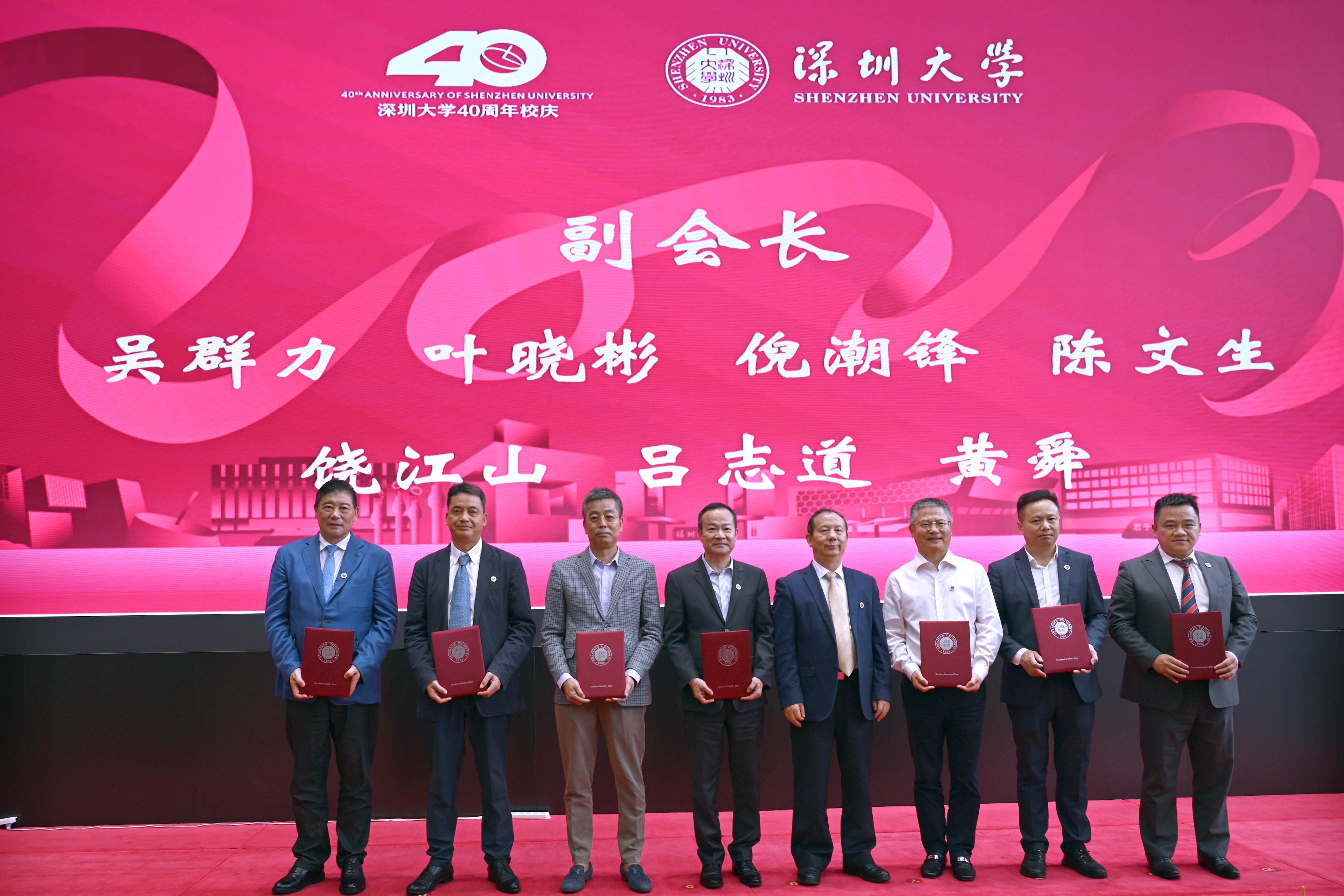 大會宣布,1989級應用化學專業校友、騰訊主要創始人、騰訊基金會發起人兼榮譽理事長、一丹獎創辦人陳一丹,代表深圳大學騰訊創始人校友團隊(馬化騰、張志東、陳一丹、許晨曄),擔任深圳大學校友總會名譽會長;1990級會計學專業校友,華為公司副董事長、輪值董事長孟晚舟擔任深圳大學校友總會名譽會長。