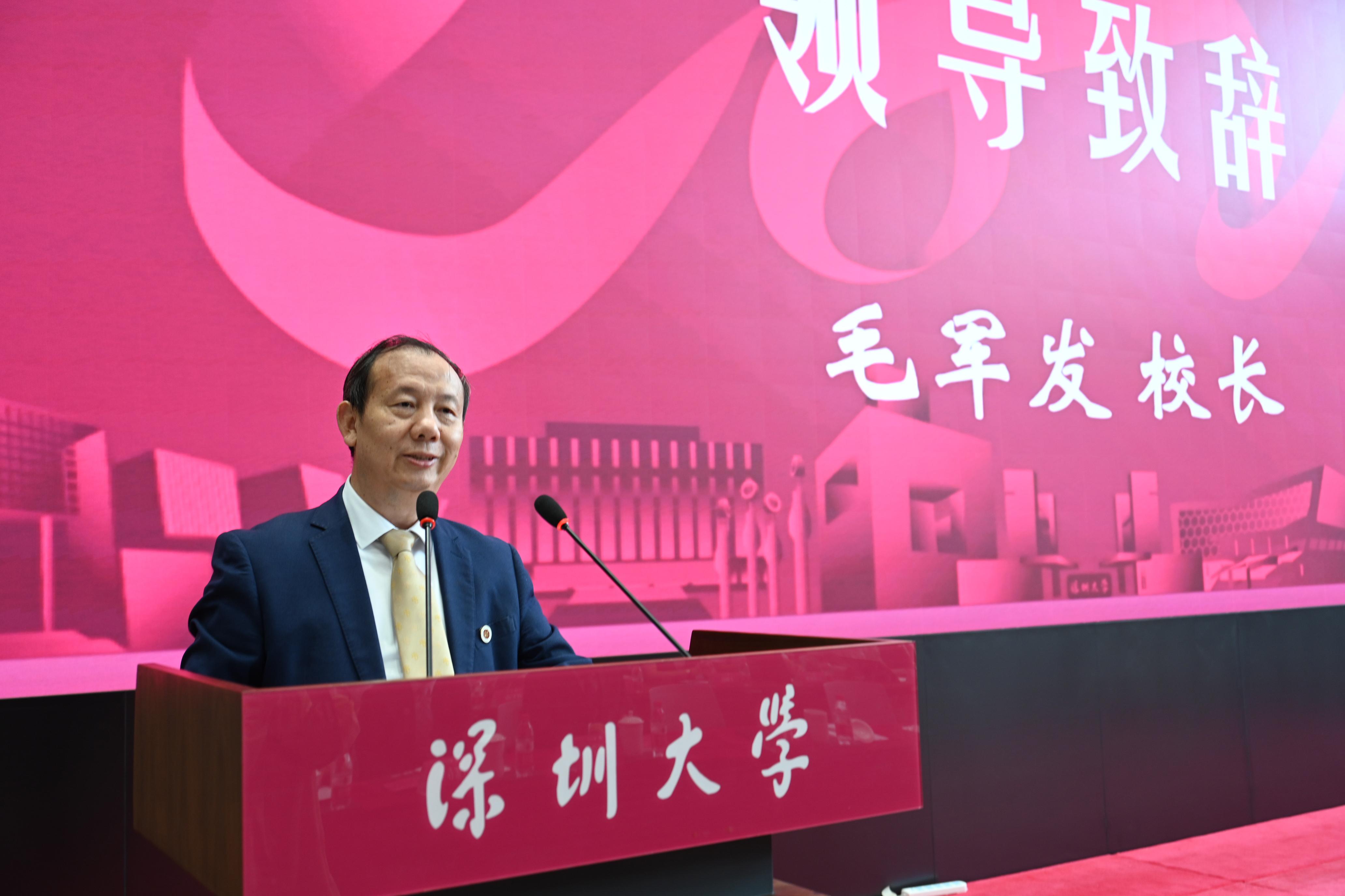 毛軍發在致辭中代表深圳大學5萬多名師生員工,向全體校友致以最熱烈的問候和最衷心的祝福。他說,深圳大學是一所年輕而充滿活力的大學,從建校起就肩負歷史重托,用40年的時間實現了從“深大速度”到“深大質量”的跨越。近年來,深圳大學在綜合實力、國際專利申請數量、師資隊伍建設、學科建設成績等方面的國際排名不斷上升,成為全球進步最快的高校之一。