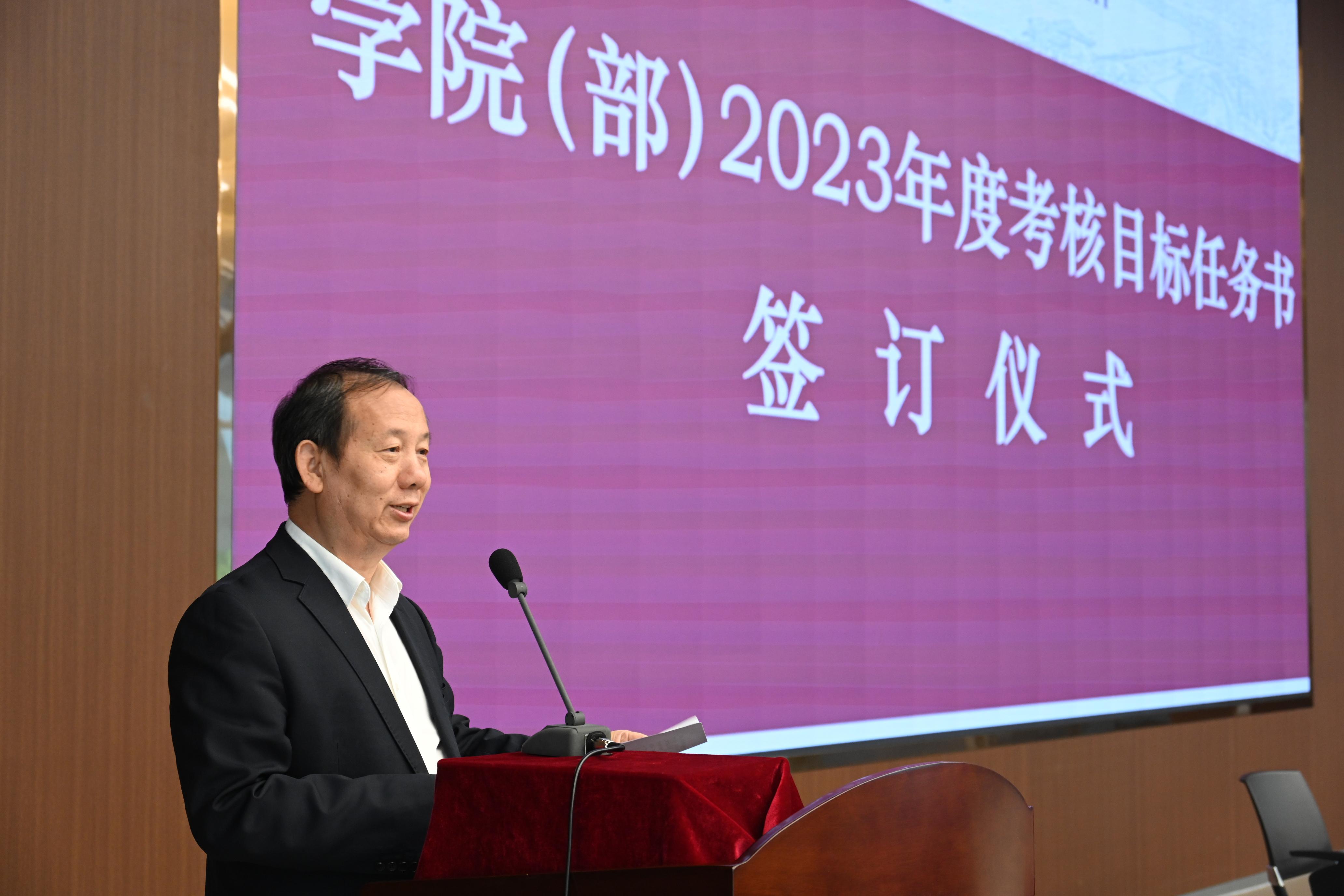 毛軍發(fā)在致辭中表示,學(xué)校“十四五”規(guī)劃充分對接深圳經(jīng)濟(jì)特區(qū)的發(fā)展需要,深度促進(jìn)學(xué)校上下形成發(fā)展合力,為學(xué)校實現(xiàn)新突破明確發(fā)展途徑。他強調(diào),為實現(xiàn)既定目標(biāo),各學(xué)院(部)必須在學(xué)校良好發(fā)展態(tài)勢的基礎(chǔ)上,創(chuàng)新發(fā)展舉措,激活發(fā)展動能,落實發(fā)展責(zé)任。“如果說規(guī)劃制定的過程是‘蓄力期’,那么規(guī)劃的落實就是至關(guān)重要的‘發(fā)力期’。”毛軍發(fā)強調(diào),簽訂任務(wù)書與考核是方式方法,推動發(fā)展才是初衷與目的。希望各職能部門與各學(xué)院(部)要以此為契機,抓落實、強內(nèi)涵、促發(fā)展,緊密銜接學(xué)校發(fā)展戰(zhàn)略,進(jìn)一步加強內(nèi)部管理體制機制創(chuàng)新,激發(fā)干事創(chuàng)業(yè)活力;凝練學(xué)院學(xué)科特色,認(rèn)真落實“十四五”各項建設(shè)任務(wù),高質(zhì)量超標(biāo)準(zhǔn)完成各年度考核目標(biāo),促進(jìn)本學(xué)院(部)實現(xiàn)內(nèi)涵式高質(zhì)量發(fā)展,為學(xué)校發(fā)展做出新的更大貢獻(xiàn)。
