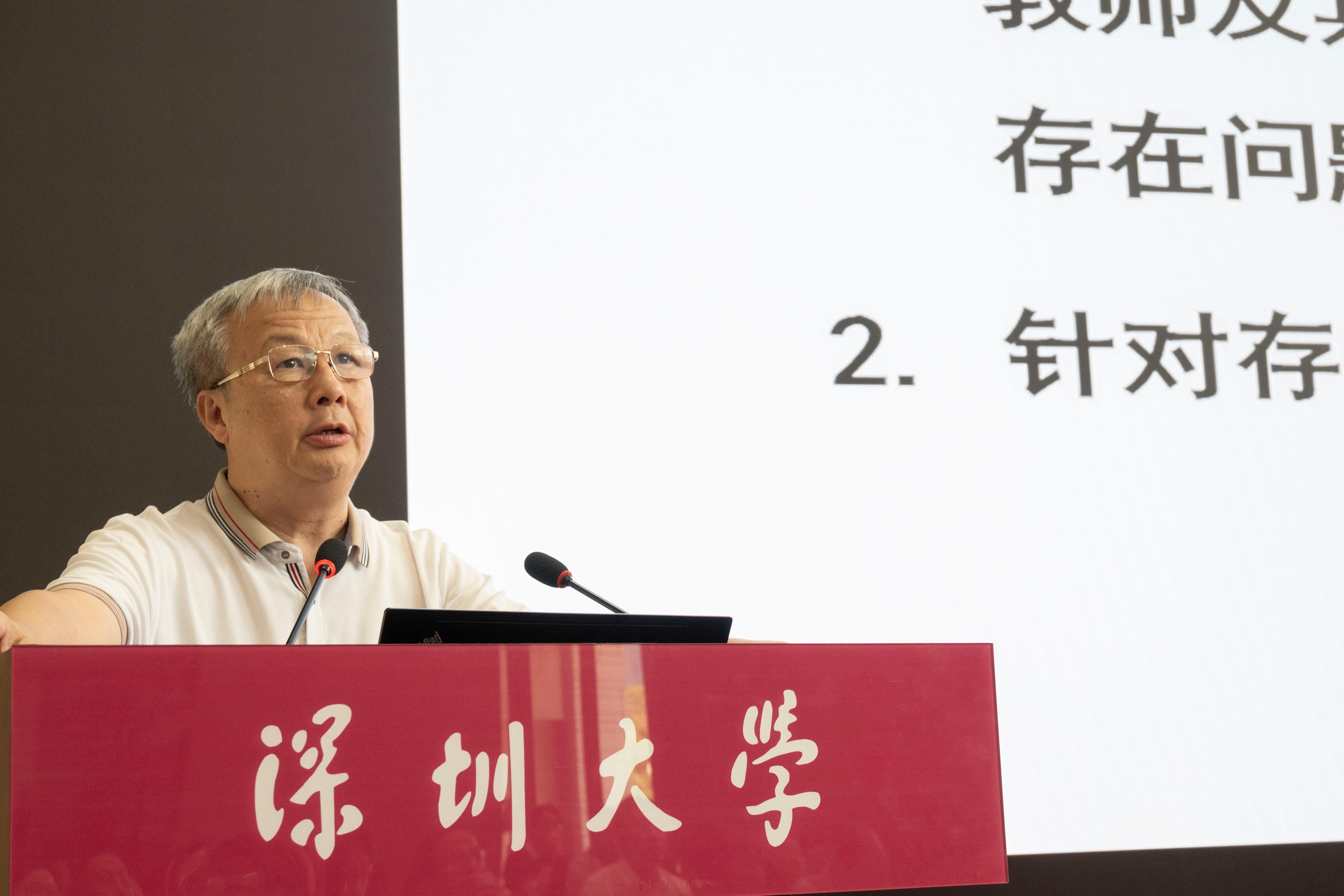 毛軍發作《深圳大學第五輪學科評估結果分析與思考》報告,從學科評估基本情況、深圳大學評估結果、具體學科詳細分析以及下一步的工作思考四點出發,指出深圳大學建設世界一流大學的目標深度融入深圳城市建設“三步走”戰略,圍繞“雙一流”創建的學科規劃,要持續激發廣大干部和教職員工擔當作為、干事創業的潛力、動力與活力。