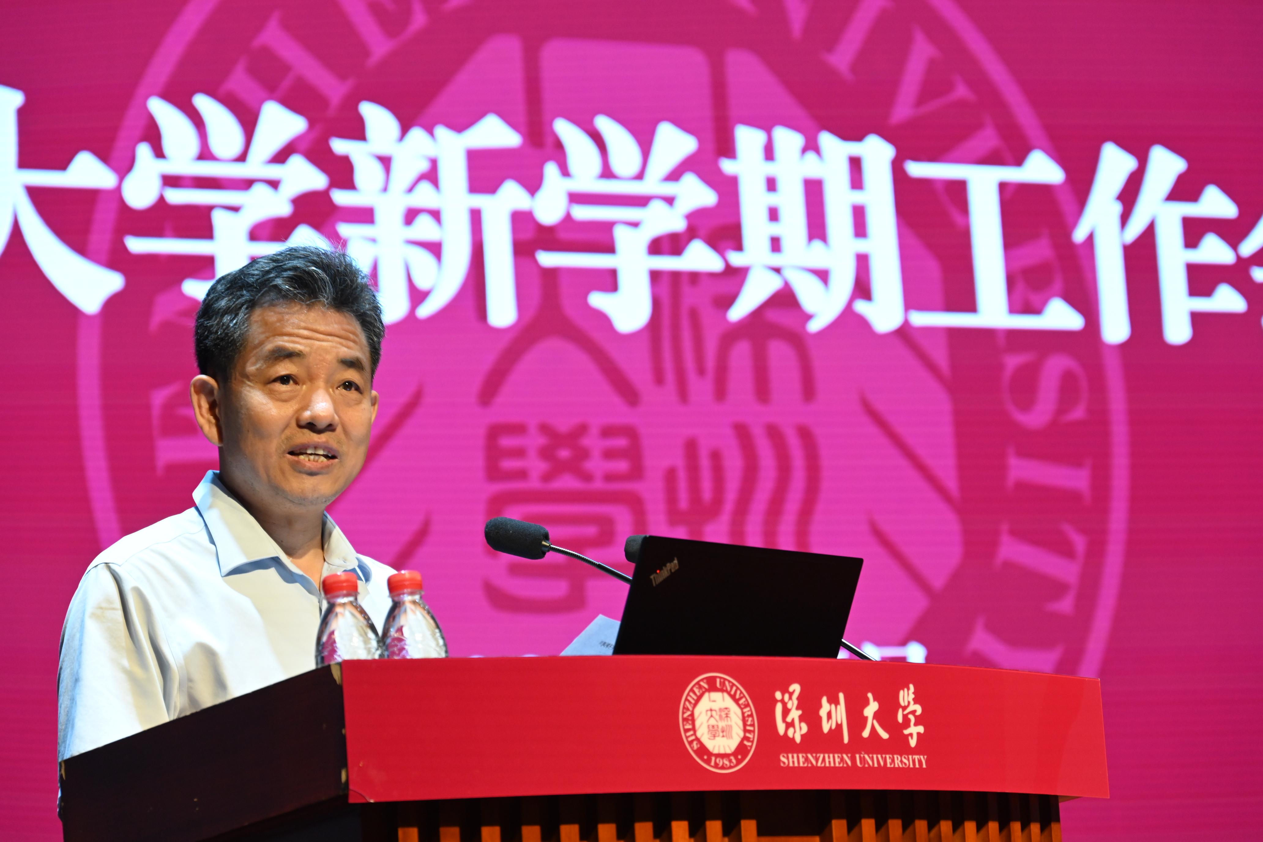 9月6日下午,深圳大學(xué)在粵海校區(qū)國(guó)際會(huì)議廳召開(kāi)新學(xué)期工作會(huì)議。校黨委書(shū)記李清泉、校長(zhǎng)毛軍發(fā)分別部署新學(xué)期黨建工作、行政工作,校黨委副書(shū)記、紀(jì)委書(shū)記王月興,副校長(zhǎng)徐晨、李永華、汪永成、張曉紅、周輝出席會(huì)議并布置新學(xué)期分管工作。王月興主持會(huì)議。