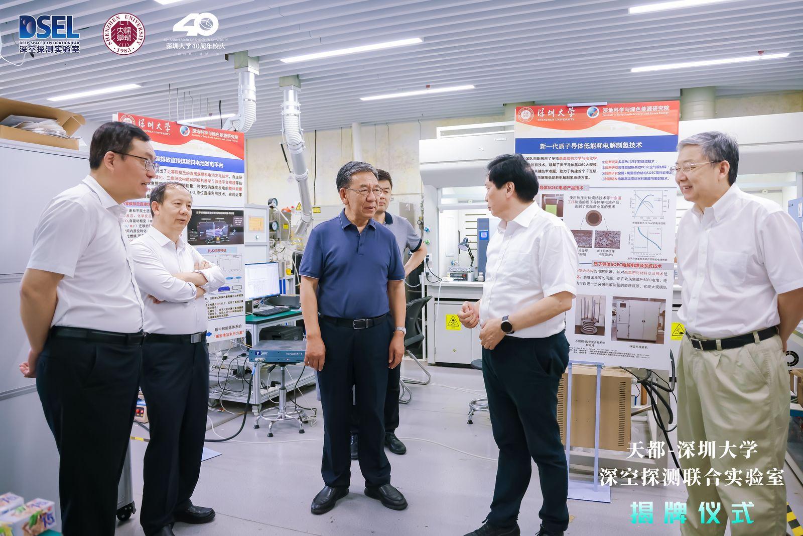天都-深圳大學深空探測聯合實驗室作為深空探測實驗室合作共建的首批聯合實驗室之一,已被深圳大學納入學校高水平大學三期建設規(guī)劃。深空探測實驗室將與深圳大學攜手,以聯合實驗室為平臺,匯聚謝和平院士團隊等深圳大學優(yōu)勢科研力量,認真貫徹落實習近平總書記“發(fā)展航天事業(yè),建設航天強國”和“深空探測成為科技競爭的制高點”等指示精神,聚焦以月球深部巖石原位保真取芯與測試為代表的深空資源開發(fā)利用等技術前沿和戰(zhàn)略需求,開展戰(zhàn)略性、前瞻性、基礎性技術攻關和新興交叉學科技術研究,支撐國家未來深空探測重大工程實施,服務航天強國建設戰(zhàn)略。
