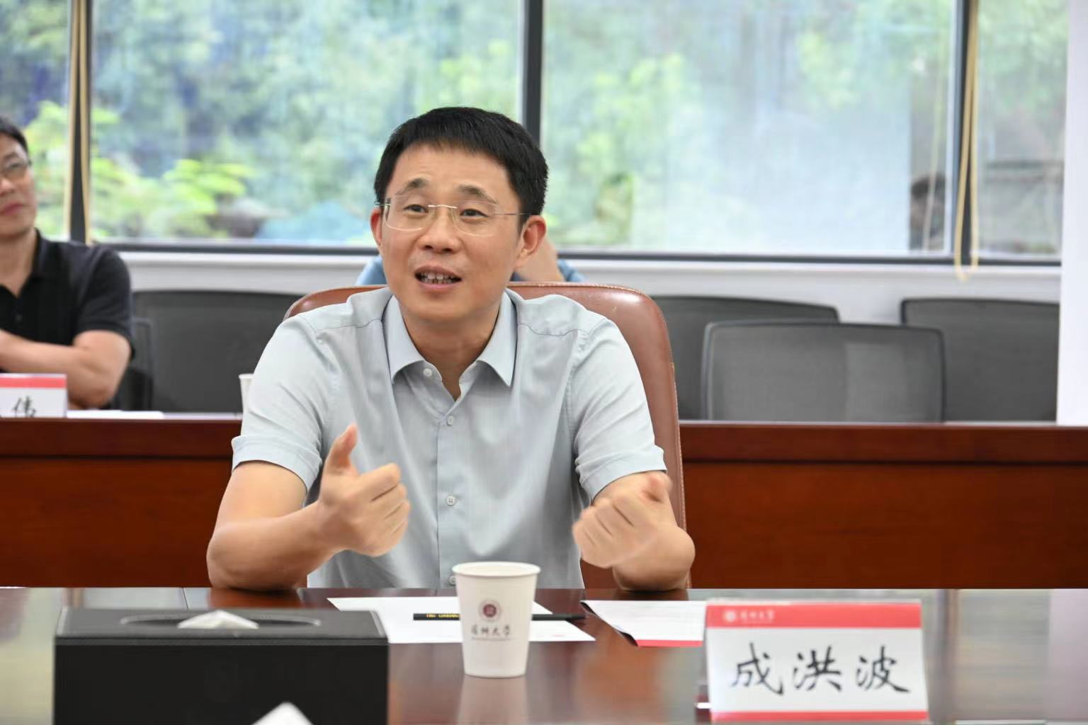 成洪波介紹東莞理工學院學科建設情況。他表示,當下正值學校發展建設的關鍵時期,希望以此次調研為契機,學習借鑒深圳大學在人才培養、團隊建設、擔當社會責任等方面的經驗,進一步探索兩校合作機制,以期早日實現突破與成長。成洪波表示,希望通過尋求領軍人才支持,引進優秀師資幫扶,開拓新型研究方向,助力學校高水平建設;通過搭建兩校合作交流平臺,滿足區域建設需求,實現大灣區聯動發展,促進人才交流與文化交流;加強學科建設,適時調整辦學策略,推動各大項目落地實施與成果轉化。
