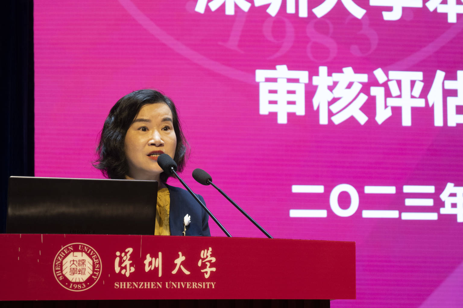 教務部主任袁磊從“新一輪審核評估的啟動背景、新一輪審核評估的主要特點、深圳大學審核評估工作情況、同行院校審核評估工作案例展示”四個方面對新一輪審核評估工作進行解讀。他指出,新一輪審核評估把本科教學工作評估轉變為本科教育教學評估,把立德樹人融入評估全過程,落實“以本為本”“四個回歸”,強化本科人才培養和本科教育核心地位。學校要對標對表、凝心聚力做好評建工作,以評促建、以評促改、以評促管、以評促強,以新一輪審核評估為契機,齊心協力推動學校建設發展。