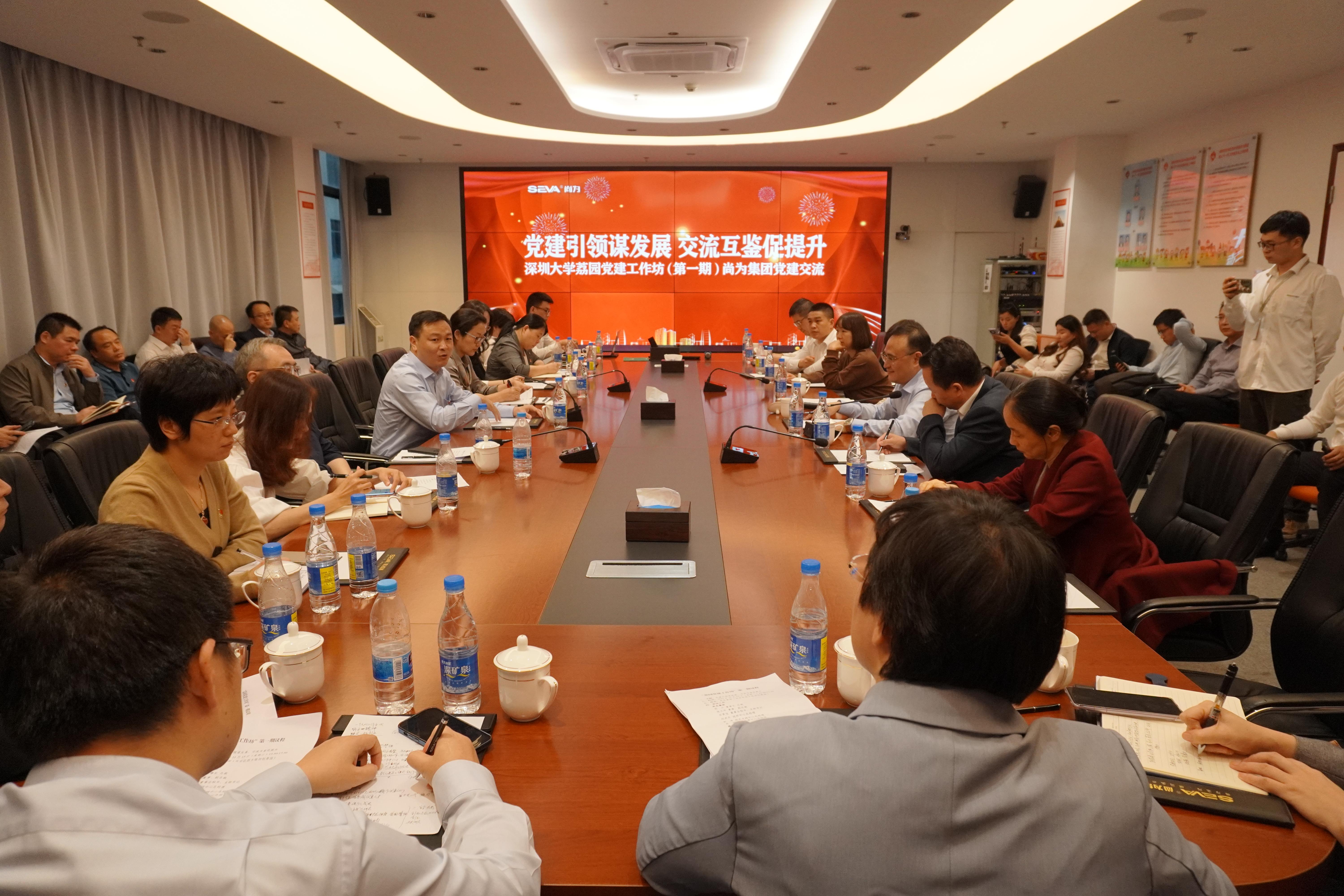 為深入開(kāi)展學(xué)習(xí)貫徹習(xí)近平新時(shí)代中國(guó)特色社會(huì)主義思想主題教育,加強(qiáng)黨建引領(lǐng)作用,增強(qiáng)黨組織的凝聚力,11月15日,深圳大學(xué)“荔園黨建工作坊”第一期“黨建引領(lǐng)謀發(fā)展,交流互鑒促提升”主題學(xué)習(xí)交流活動(dòng)走進(jìn)尚為集團(tuán)。深圳大學(xué)黨委副書(shū)記吳報(bào)水,尚為集團(tuán)董事長(zhǎng)胡興,深圳大學(xué)黨政辦公室、黨委組織部、黨委宣傳部、機(jī)關(guān)黨委、黨委學(xué)工部、黨委教師工作部等相關(guān)職能部門(mén)負(fù)責(zé)人,基層黨委(總支)書(shū)記、副書(shū)記,尚為集團(tuán)相關(guān)部門(mén)負(fù)責(zé)人以及深圳大學(xué)師生黨員代表參加本次活動(dòng)。