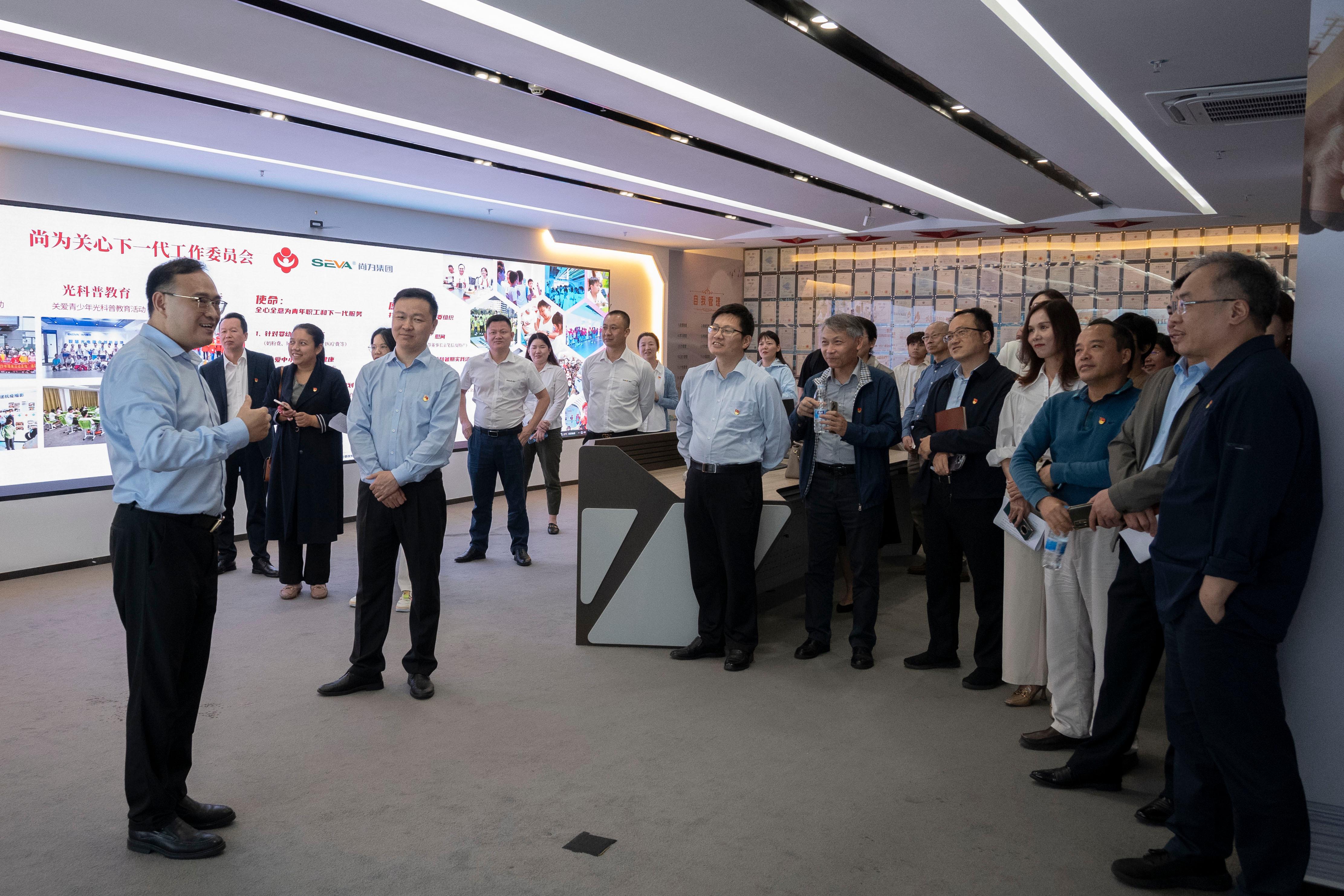 近日,習(xí)近平總書(shū)記致信祝賀中華全國(guó)工商業(yè)聯(lián)合會(huì)成立70周年強(qiáng)調(diào),把廣大民營(yíng)經(jīng)濟(jì)人士更加緊密地團(tuán)結(jié)在黨的周圍。深圳大學(xué)黨委通過(guò)積極開(kāi)展黨建交流活動(dòng),與民營(yíng)企業(yè)進(jìn)行黨建工作互學(xué)互促。吳報(bào)水一行在尚為智能健康照明有限公司總經(jīng)理徐彬的引領(lǐng)下,參觀尚為文化館,觀看《不忘初心》企業(yè)微電影,了解尚為集團(tuán)的發(fā)展歷程、發(fā)展戰(zhàn)略、黨建工作、企業(yè)文化以及公益活動(dòng)等情況。據(jù)了解,尚為集團(tuán)總部座落于深圳,是以半導(dǎo)體照明研發(fā)與應(yīng)用、大屏顯示系統(tǒng)與智能控制為核心的集團(tuán)企業(yè),多年來(lái)深耕企業(yè)黨建,以黨建帶動(dòng)團(tuán)隊(duì)建設(shè),為集團(tuán)穩(wěn)健發(fā)展注入強(qiáng)勁動(dòng)能。其創(chuàng)始人、董事長(zhǎng)胡興今年受聘為首批寶安區(qū)“黨建輔導(dǎo)員”之一。