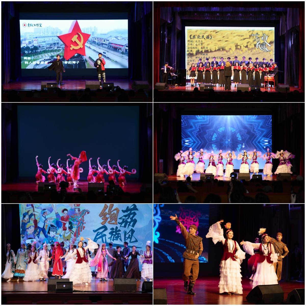 晚會現(xiàn)場,漢族、維吾爾族、哈薩克族、蒙古族、藏族等各民族學(xué)生帶來了獨(dú)具特色的文藝表演,既有民族特色、又能體現(xiàn)各民族學(xué)生團(tuán)結(jié)一心的歌舞節(jié)目給現(xiàn)場觀眾留下深刻印象。