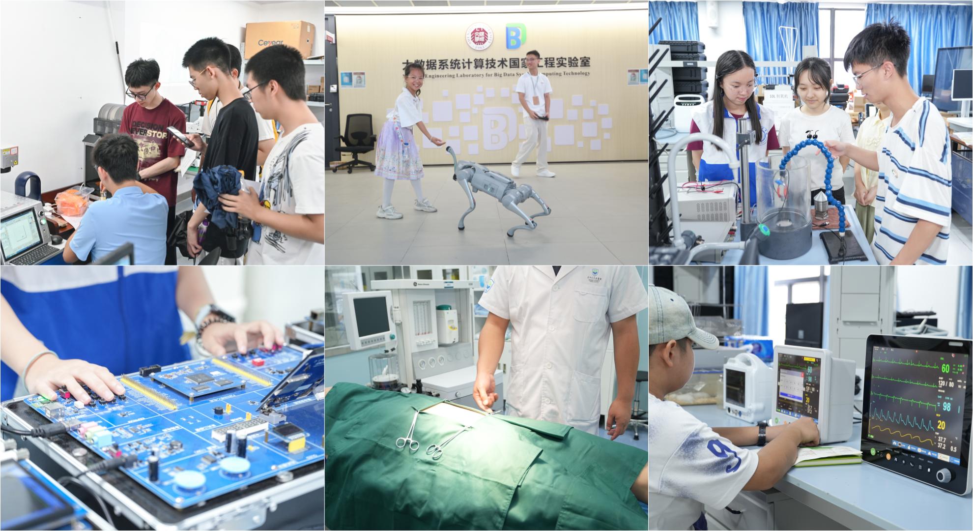 如果你想探訪前沿科技與先進(jìn)實(shí)驗(yàn)室,可以循著“對話與解碼路線”和“實(shí)驗(yàn)室奇遇記”等路線打卡。在人工智能學(xué)院,由IEEE榮譽(yù)班學(xué)生改造的機(jī)器狗通過強(qiáng)化學(xué)習(xí)算法實(shí)現(xiàn)了動態(tài)平衡控制,完成了高難度空翻動作;在生命與海洋科學(xué)學(xué)院的海洋科學(xué)展覽館,豐富的海洋生物標(biāo)本展現(xiàn)了海洋科學(xué)的魅力;在材料學(xué)院,考生能通過掃描電鏡窺見微觀世界,并動手體驗(yàn)將材料組裝為電池;在心理學(xué)院,參與者通過圖像聯(lián)想探索潛意識,與“自己”對話;在醫(yī)學(xué)部,解剖實(shí)驗(yàn)室和動物房開放參觀,考生和家長可以近距離感受臨床醫(yī)學(xué)的學(xué)習(xí)內(nèi)容,還可通過參觀人工智能醫(yī)學(xué)腦機(jī)接口實(shí)驗(yàn)室、生物醫(yī)學(xué)工程儀器,了解學(xué)科交叉的前沿領(lǐng)域。從惠州趕來的曹同學(xué)說:“深大的學(xué)科真的很有魅力!近距離接觸到前沿科技,讓我對相關(guān)的學(xué)科充滿了期待!