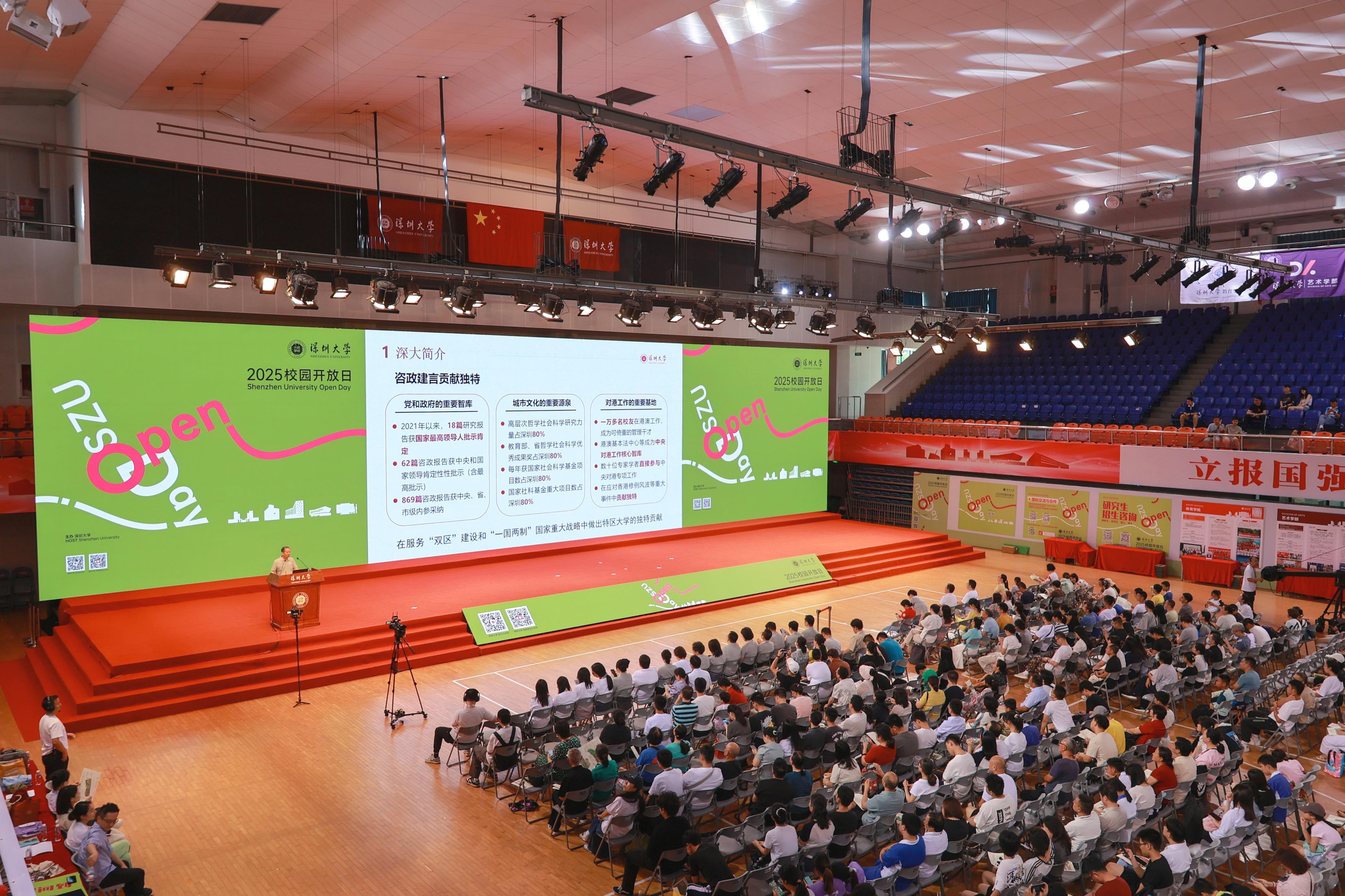 上午九點(diǎn),深圳大學(xué)2025年招生宣講會在粵海校區(qū)元平體育館開啟,在麗湖校區(qū)啟明樓設(shè)分會場直播。